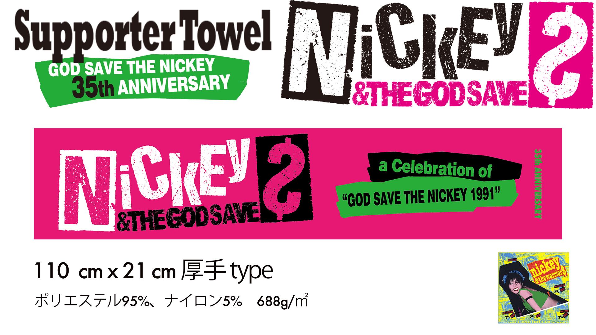"NICKEY & THE GOD SAVES"のロゴをあしらったサポーター・タオルだ。